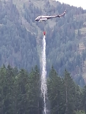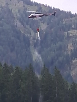 Neben der Zubringerleitung aus dem Tal (Wasserbezug Bach) wurden von den Feuerwehren insgesamt noch drei weitere Zubringerleitungen in Richtung Waldstück errichtet. Als Löschwasserentnahme stand dabei ein Löschwasserbehälter sowie ein Hydrant in der Ortschaft Stollwitz zur Verfügung. Mit einer dieser Leitungen wurde der neue Waldbrandbehälter der FF Birnbaum befüllt und von dort aus entnahm der Hubschrauber mittels „Bambi Bucket“ das Löschwasser.